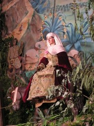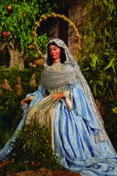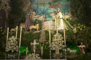 Del 16 al 24 de diciembre se la puede contemplar caminando al lado de su esposo, subida en la mula, vestida de pastora, sacando agua del pozo o sentada junto al fuego, pidiendo posada o entrando al portal, y por supuesto cuando más bella está, en la Solemnidad de la Natividad del Señor, durante la misa del gallo. Todo ello acompañado por las más dulces coplas y villancicos que con primor canta el coro de mujeres de la Hermandad. Y la Navidad continúa para nuestra Hermandad con la solemne Función en la Solemnidad de Santa María, Madre de Dios, celebrada el día de año nuevo, y que culmina con procesión claustral y besapiés al Niño Jesús. Finalizan los cultos navideños en la Solemnidad de la Epifanía del Señor, el día 6 de enero. Para este día la parroquia se transforma, la Virgen de la Soledad abandona el portal en el que ha estado durante toda la Navidad y muestra a los tres Reyes Magos al Hijo de Dios que está en su regazo.