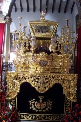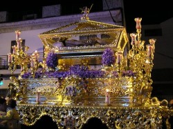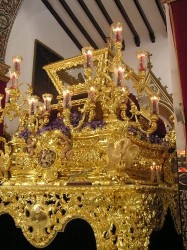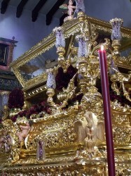El llamador realizado en metal dorado está conformado por un querubín que sostiene un candelero. Cuatro candelabros de guardabrisas, colocados en las esquinas iluminan el paso. No son los originales, ya que estos se realizaron durante el último proceso de restauración del paso, adaptándose mejor a la altura del paso y dejando una mejor visibilidad de la imagen yacente. Cada guardabrisa se remata por una coronilla de metal dorado, realizadas en los talleres Itálica de Santiponce.