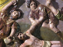 Hay que decir que estas cartelas pasionistas son una reproducción de las originales de 1912 realizadas tras la reciente restauración de Manuel Calvo y que siguen en su estilo a diversas obras realizadas por el maestro escultor barroco Pedro Roldán, como se aprecia por ejemplo en la vestimenta y disposición de las figuras de la última descrita y el retablo mayor de la Iglesia de San Jorge del Hospital de Santa Caridad de Sevilla.
