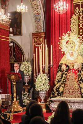 La Hermandad de Santiago celebró el pasado sábado 14 de marzo, a partir de las 21:00 horas, el acto donde se pronunció el XXXVII Pregón de la Hermandad ante la cercanía de una nueva Semana Santa, estando presidido el acto por la imagen de Nuestra Señora de la Soledad que se hallaba espléndida a los pies del presbiterio de la iglesia santiaguista con motivo de su besamanos y la Función Principal de Instituto a celebrar el domingo día 15 a las 12:30 horas.