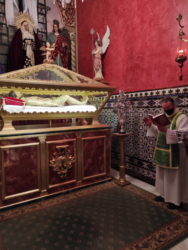Bendecida la nueva peana del Santo Sepulcro del Santísimo Cristo de los Remedios Este jueves, 21 de enero, durante el trascurso de la Misa de Hermandad, nuestro párroco y director espiritual, D. José María Losada Lahera, ha bendecido la nueva peana sobre la que se asienta el Santo Sepulcro del Santísimo Cristo de los Remedios.