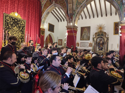 El acto vino presentado por José Ramón Muñoz Berros, interpretando la banda las marchas 'Misericordia isleña' (Luis Alfonso Mirault Lago), 'Al cielo contigo' (Antonio Martínez), 'Esperanza gitana' (Ismael Giménez Choza), 'Eucaristía' (Francisco Javier González Ríos), 'Mi cristo moreno' (Raúl Rodríguez Domínguez) y 'Pater et magister' (Manuel Jesús Guerrero Marín).