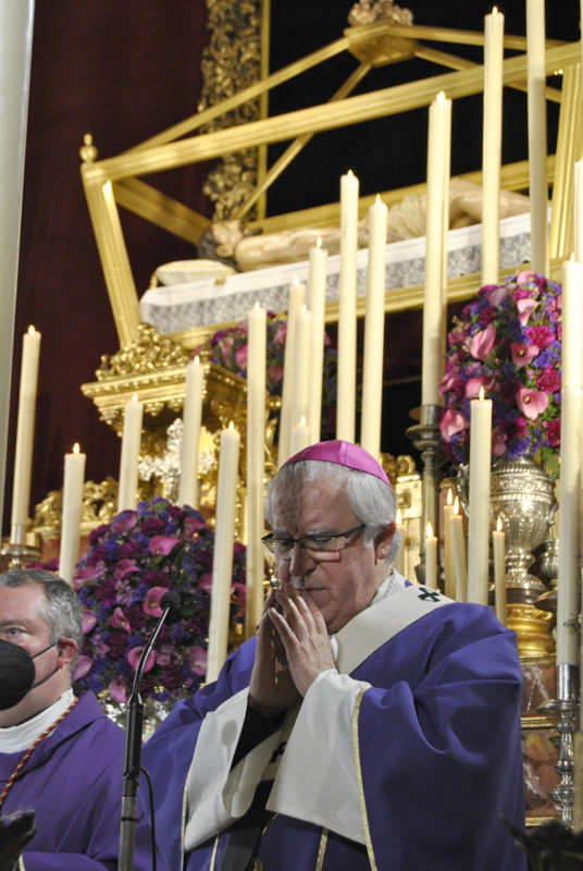 El Excmo. y Rvdmo. Monseñor D. José Ángel Saiz Meneses, Arzobispo de Sevilla, presidió este lunes, 21 de marzo, la Sagrada Eucarística del primer día del Solemne Triduo en honor al Santísimo Cristo de los Remedios.