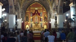 Este lunes día 14, Festividad de la Exaltación de la Santa Cruz, esta Hermandad Sacramental de Santiago Apóstol celebró una solemne función en honor del Cristo de la Santa Vera Cruz. La misma dio comienzo a las 20 horas, ocupando la Sagrada Cátedra el párroco y director espiritual de la Hermandad, D. Florentino Córcoles Calero. Una hora antes del comienzo de la eucaristía, la imagen del crucificado quedaba expuesta a la veneración de los fieles en devoto besapiés en un sencillo altar dispuesto en el presbiterio de la parroquial santiaguista.