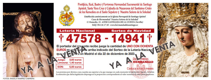 La Hermandad Sacramental de Santiago Apóstol vuelve a poner a disposición de los hermanos y devotos, un año más, los números de la LOTERÍA DE NAVIDAD 2023.