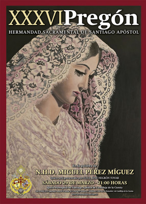 Minutos después se dio a conocer el cartel del pregón, que descubrieron conjuntamente el propio pregonero y el hermano mayor, José Antonio Sánchez Mejías. El cartel lo protagoniza una bellísima imagen de Nuestra Señora de la Soledad pintada en 1972 por el padre del pregonero, Miguel Pérez Borrego (q.e.p.d.), cuyo descubrimiento fue respondido con el aplauso de todos los presentes.