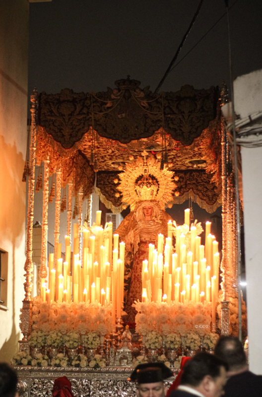 El portentoso paso de palio iba adornado con rosas mundial holandesas, paniculata colombiana y eucalipto cinerea, mientras que en la peana se colocaron rosas rojas. La Virgen se presentaba vestida con el manto de terciopelo negro bordado en oro fino por las hermanas Antúnez y saya roja de 1952 bordada en el taller de Esperanza Elena Caro bajo el diseño de N.H.D. Juan Oliver Míguez. El tocado era un estreno donado por varios hermanos, formado por un antiguo lamé de plata del siglo XIX. Remataba la iconografía de la Santísima Virgen la corona 'Grandiosa', entre otras piezas de joyería, entre las que destacaban el puñal y la corona de espinas de oro en su mano izquierda. La Banda de Música “Santa Ana” de Dos Hermanas, acompañó musicalmente el paso de la Santísima Virgen.