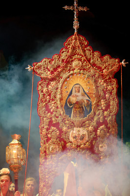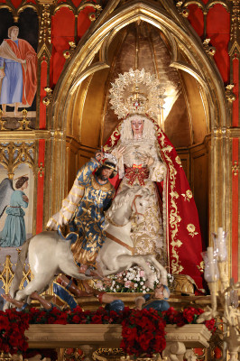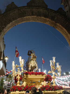 Al término del tercer día de Triduo se celebró Solemne Procesión claustral con S.D.M. Intervino musicalmente, como es costumbre, el Coro Litúrgico “Nuestra Señora de la Soledad”. La imagen ecuestre del Santo Patrón se dispuso sobre el paso procesional que se estrenaba completo en sus labores de carpintería. Diversos candeleros con cera blanca iluminaron la imagen y las flores, de diversas especies y tonalidades, se dispusieron en cuatro jarras (dos grandes y dos pequeñas) escoltando el manifestador central y un centro al pie del conjunto escultórico. Dos bandejas plateadas escoltaban el montaje en ambos extremos.