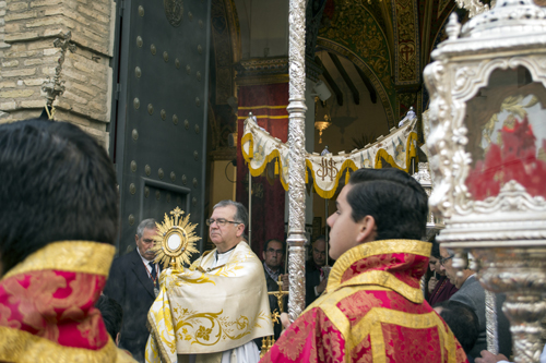 Pasados unos minutos de las 7 de la mañana dio comienzo la Función de la Resurrección de Nuestro Señor Jesucristo en el templo santiaguista de la villa, oficiada por el Rvdo. Padre D. Florentino Córcoles Calero, párroco de Santiago y Purísima Concepción y director espiritual de nuestra Hermandad. Cientos de hermanos congregados alrededor del cirio pascual encendido, símbolo de Cristo resucitado. Este año, la nota musical de la Eucaristía corrió a cargo del Coro Litúrgico de nuestra Hermandad. Una vez finalizada la misma, y con el acompañamiento musical de la banda cantillanera antes mencionada, se celebró la procesión con S.D.M. bajo palio por la Plaza de Santiago. Se realizaron algunas de las tradicionales paradas o posas con el Santísimo en los altares efímeros instalados al efecto a lo largo del itinerario. Finalizada la procesión, se bendijo a los allí presentes y se reservó el Santísimo en el Sagrario.