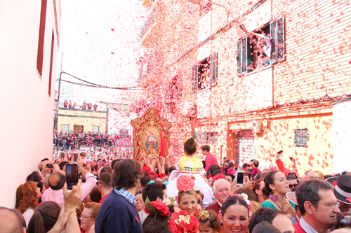 La Vuelta discurrió con absoluta normalidad, se cumplieron escrupulosamente los horarios establecidos y fue seguida en todo momento por gran cantidad de hermanos y devotos. Al llegar a la esquina de la calle Real con Manuel García Junco, siendo las doce del mediodía, se rezó el Regina Coeli, se le dedicó a la Virgen una Salve y se le interpretó la marcha ‘Soledad, Rosa de Castilleja’, algo que va camino de convertirse ya en todo un clásico y punto esperado por la multitud placeña. Asimismo, se le tributó al Simpecado con una enorme petalada y miles de papelillos ‘coloraos’ que terminaron desplegándose también por zonas colindantes. A la 1 de la tarde, ante el fervor de la multitud congregada, el Simpecado de Nuestra Señora de la Soledad hizo su entrada en el templo matriz entre numerosos vítores y el repique de campanas. No faltó tampoco la Salve a la Virgen y la interpretación de ‘Soledad, Rosa de Castilleja’ y el Himno Nacional.
