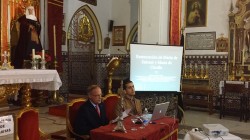 Por otro lado, nuestro hermano Juan Prieto Gordillo, doctor en Historia del Arte y también miembro de la citada comisión, aportó a todos los presentes interesantes datos históricos y artísticos sobre las imágenes restauradas. Prieto Gordillo informó de que “ambas tallas, junto a las imágenes de San Juan y María Magdalena que presiden la Capilla del Santo Entierro, junto al Santísimo Cristo y Nuestra Señora de los Dolores, formaron parte durante casi setenta años del paso de Duelo proyectado por nuestra Hermandad Sacramental de Santiago Apóstol para su salida procesional cada tarde de Viernes Santo”. Tras leer el documento que certifica lo anteriormente expuesto y que ha sido localizado en el Archivo de la Iglesia Parroquial Matriz de Santiago Apóstol, pasó a desgranar brevemente varias hipótesis relativas a la autoría de las imágenes, una línea de investigación que según sus palabras aún no ha finalizado.