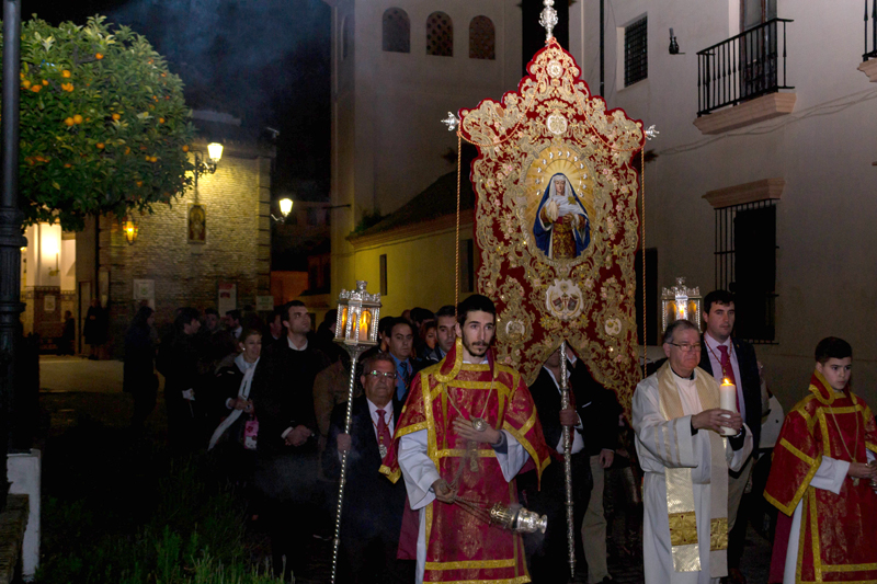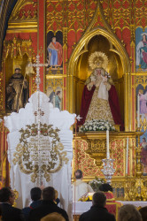 A las 19:00 horas se exponía el Santísimo Sacramento entre rezos y cánticos eucarísticos entonados por el Coro Litúrgico y media hora después daba comienzo el rezo del Santo Rosario, al término del cual se procedió a reservar a Su Divina Majestad. Inmediatamente, se celebró la Función Solemne a Nuestra Señora de la Soledad, cuya bendita y venerada imagen portaba en sus manos al Divino Infante.
