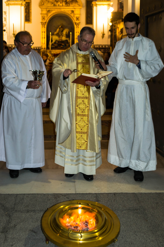 La celebración, oficiada por nuestro párroco y director espiritual, N. H. el Rvdo. Sr. D. Florentino Córcoles, se inició con el cántico basado en el Salmo 121 Qué alegría cuando me dijeron: vamos a la casa del Señor, popular obra de M. Manzano que pretendía hacer alusión a la liturgia del día, a la acudida de la Iglesia al encuentro de Cristo. Tras la homilía, los fieles ofrecieron un pequeño papel en el que habían escrito «un obstáculo entre nosotros y Dios», en palabras del sacerdote, los cuales fueron «purificados» en el fuego que el oficiante bendijo en el dintel del templo parroquial.