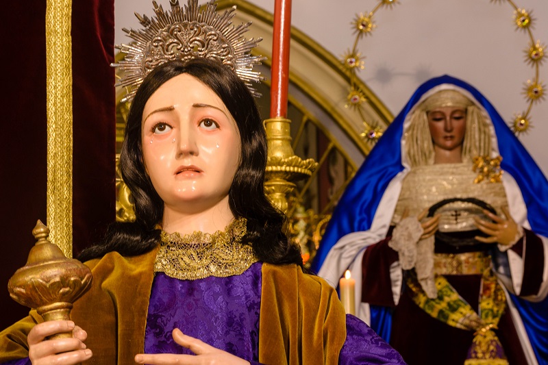 El pasado miércoles día 1 de marzo (Miércoles de Ceniza) y tras la celebración de la Eucaristía de las 20:30 horas en el templo parroquial santiaguista, fue bendecida por el párroco y director espiritual N.H.D. Florentino Córcoles la imagen de santa María Magdalena, propiedad de nuestra corporación, tras la restauración a la que ha sido sometida por el joven escultor y restaurador Pablo Lanchares.
