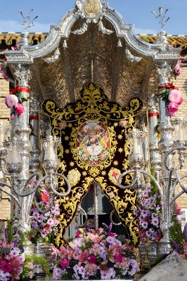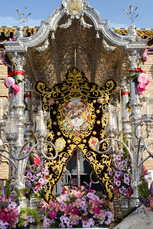 El pasado Domingo de Resurrección nuestra corporación vivió uno de los estrenos más destacados de los últimos años. Fue bendecido, durante la Función de la Resurrección, el nuevo simpecado, insignia conmemorativa de la reciente Coronación Canónica de Nuestra Señora de la Soledad. A falta de algunos detalles, como el bordado de la parte trasera, la pieza fue colocada a las 10 de la mañana en su carreta para presidir la Vuelta en la mañana de tan glorioso día en nuestra Villa. Ya por la tarde, también ocupó un lugar en el cortejo de la procesión de gloria de la Virgen de la Soledad.