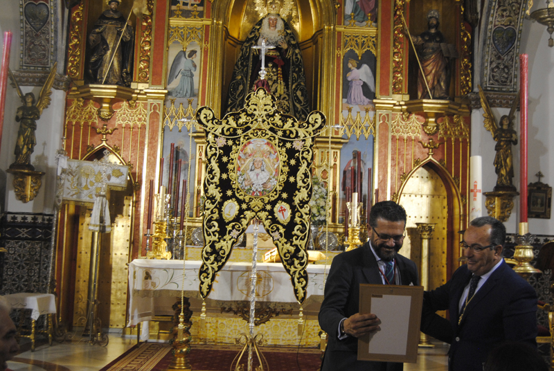 Por último, y agradeciendo a todos los presentes su presencia en la iglesia parroquial santiaguista, N.H.Dña. María Jesús Rodríguez Vera, quien ha ejecutado el bordado del Simpecado y en representación de las tres familias donantes, entregó una placa a N.H.D. José Manuel Azuaga por su inestimable ayuda durante todo el proceso de realización de la obra.