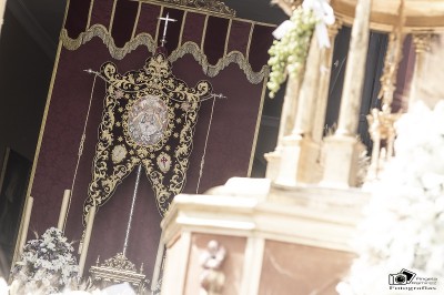 Una vez el paso hizo entrada en nuestra sede canónica, se retiró del mismo el Santísimo Sacramento y fue colocado en el Altar mientras se procedía al canto del Tantum Ergo, seguido de la Bendición Eucarística, Alabanzas de desagravio y, en último lugar, la reserva. Para concluir la ceremonia, se cantó la Salve Solemne a la Santísima Virgen de la Soledad con dedicatoria especial del señor párroco al celebrarse dicho día el primer aniversario de su Coronación Canónica; por último se realizó la despedida.