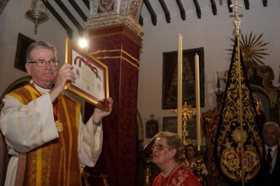 Visiblemente emocionado, el reverendo agradeció a la Hermandad "este signo de cariño porque eso significa que hay fraternidad", invitando a todos los asistentes seguir practicando la oración como medio para estar siempre unidos en Dios.