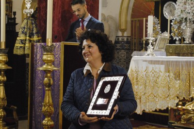 Continuó el acto con la entrega de las pastas a la pregonera por parte de su predecesora, tomando la palabra a continuación para agradecer su designación a la Hermandad y explicar cómo está viviendo estos días previos a la gran cita.