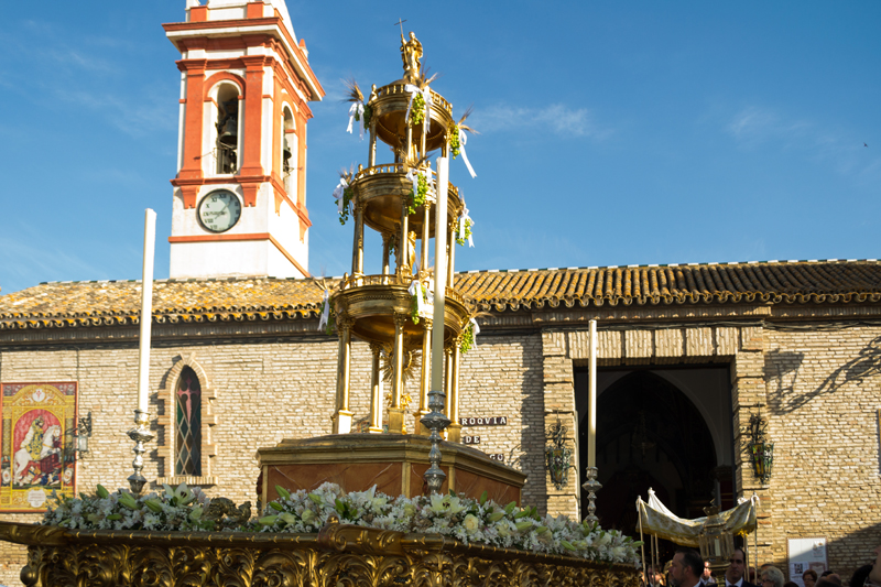 El pasado domingo 23 de junio, la Parroquia de Santiago Apóstol y Purísima Concepción de Castilleja de la Cuesta celebró la Solemnidad del Cuerpo y la Sangre de Nuestro Señor Jesucristo. A las ocho de la mañana daba comienzo la Solemnísima Función en el templo parroquial de Santiago Apóstol, presidida por nuestro párroco y director espiritual, D. José María Losada Lahera, y musicalizada por nuestro Coro Litúrgico.