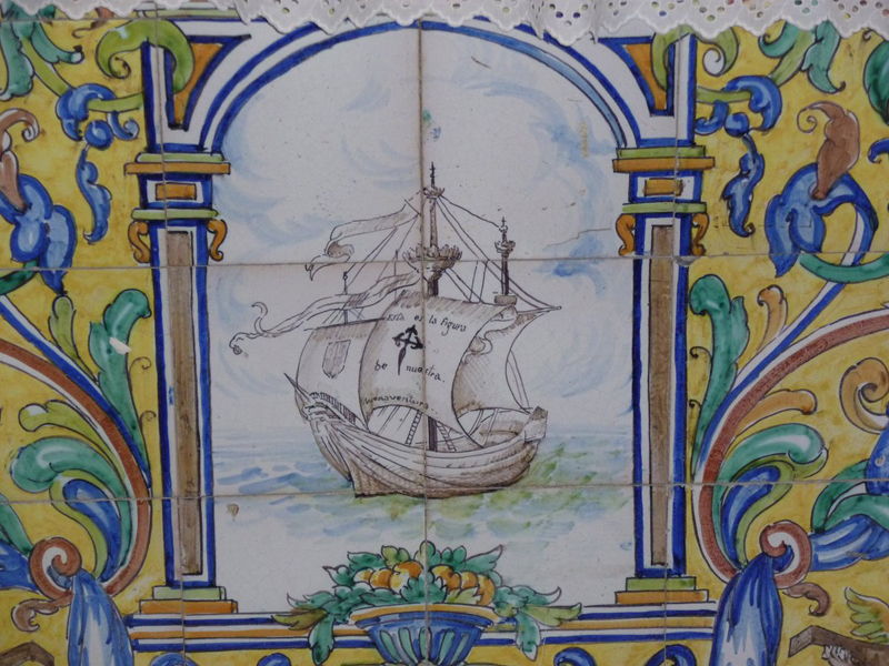 En recuerdo de esta estrecha vinculación de la primera Vuelta al Mundo con la Cruz de Santiago nos ha quedado un bellísimo conjunto de azulejos que puede verse en la Parroquia de Santa Ana, en el barrio sevillano de Triana. Dicho azulejo refleja la nao Victoria navegando con las velas desplegadas y una gran Cruz de Santiago en la vela mayor, además de la ya citada inscripción "ESTA ES LA FIGURA DE NUESTRA BUENAVENTURA". Se encuentra el azulejo bajo la Virgen de la Victoria [7], la misma imagen ante la que rezaron los 18 supervivientes nada más llegar a Sevilla tras su histórico viaje.