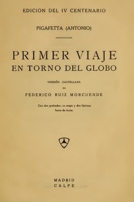 [2] 'Relación del primer viaje alrededor del mundo', por Antonio Pigafetta. 1536.