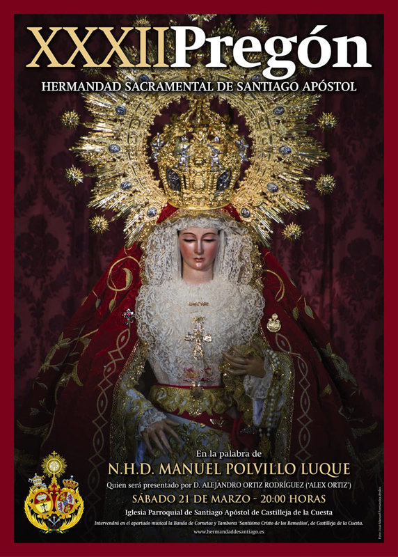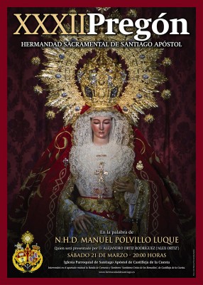 Tras el cuarto día del Solemne Septenario Doloroso en honor a Nuestra Señora de la Soledad, este jueves tenía lugar en el templo parroquial de Santiago Apóstol de Castilleja de la Cuesta el acto de entrega de las pastas del pregón de nuestra Hermandad y la presentación del cartel anunciador del mismo, una cita que se celebraba por cuarto año consecutivo y con la que se quiere dar un mayor realce si cabe al pregón decano de la Villa, que cumple este año su XXXII edición y que pronunciará N.H.D. Manuel Polvillo Luque.