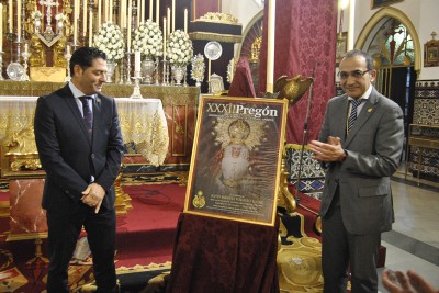 El acto estuvo presentado por N.H.Dña. Isabel Santed Chaves (secretaria primera de la Hermandad), quien dio paso en primer lugar a la presentación del cartel del pregón, que descubrieron conjuntamente el propio pregonero y el hermano mayor, Francisco Luque González. En esta ocasión, el cartel lo protagoniza una bellísima imagen del Besamanos de Nuestra Señora de la Soledad tomada por José Manuel Fernández Andes, cuyo descubrimiento fue respondido con el aplauso de todos los presentes.