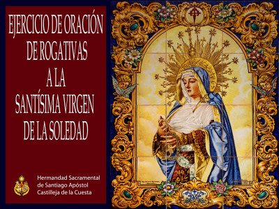¡Oh Madre de Dios¡ Virgen de la Soledad, que nos ha sido dada como Madre Dolorosa al pie de la Cruz, con el cariño y el atrevimiento de tus hijos, venimos en estos días para acompañarte en tus dolores.