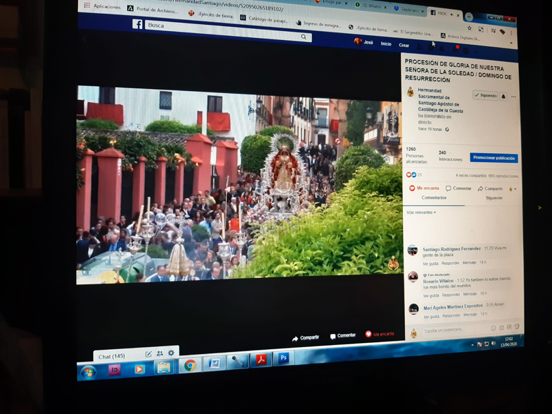 Con la Virgen de la Soledad ya de vuelta en el camarín del retablo mayor se planteaba un final de Cuaresma y Semana Santa que no se recordaba, y en estos días de soledad, de ausencia y lejanía de nuestros amados Titulares en los que aún andamos inmersos, han jugado y juegan un papel decisivo las nuevas tecnologías y especialmente las redes sociales, que habitualmente usa la corporación para hacer llegar a los hogares placeños todo aquello que deberíamos estar viviendo con el Señor de los Remedios y la Virgen de la Soledad en directo y junto a ellos.