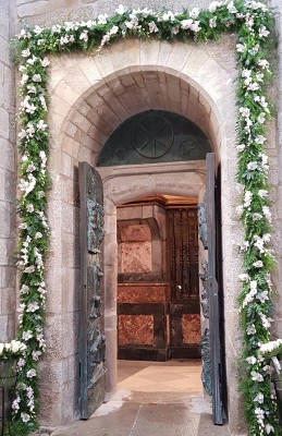 Es costumbre, además, acceder a la catedral atravesando la Puerta Santa que se abre únicamente con ocasión de esta solemnidad.