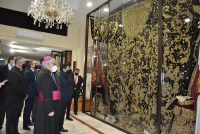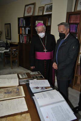 Monseñor José Ángel Saiz Meneses visitó posteriormente la Casa de Hermandad ‘Nuestra Señora de la Soledad’ guiado por N.H.D. Juan Prieto Gordillo, archivero de la corporación, pudiendo conocer el patrimonio que atesora la corporación santiaguista , así como su archivo histórico.