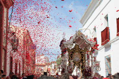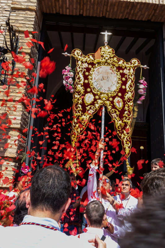 En dos puntos del recorrido (calles Real y Enmedio) se le ofrecieron dos petaladas a la Virgen y en la calle Príncipe de Asturias se unió a la presidencia, portando una vara, el General de División y Director de Enseñanza del Ejército del Aire D. Enrique Jesús Biosca Vázquez. Fue muy destacado el momento del paso de la Virgen por la Casa Hermandad en la calle Enmedio con la interpretación de las marchas “A ti Manué” y “Lloran los clarines” con la subida de algunos músicos al balcón de la misma.